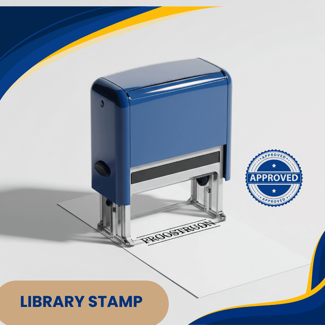 Custom Library Stamp with your library name or personal label. Perfect for book cataloging, return dates, and property marking in schools, colleges, or home libraries.
